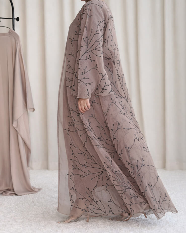 • Abaya ouverte en tulle légère et aérienne.