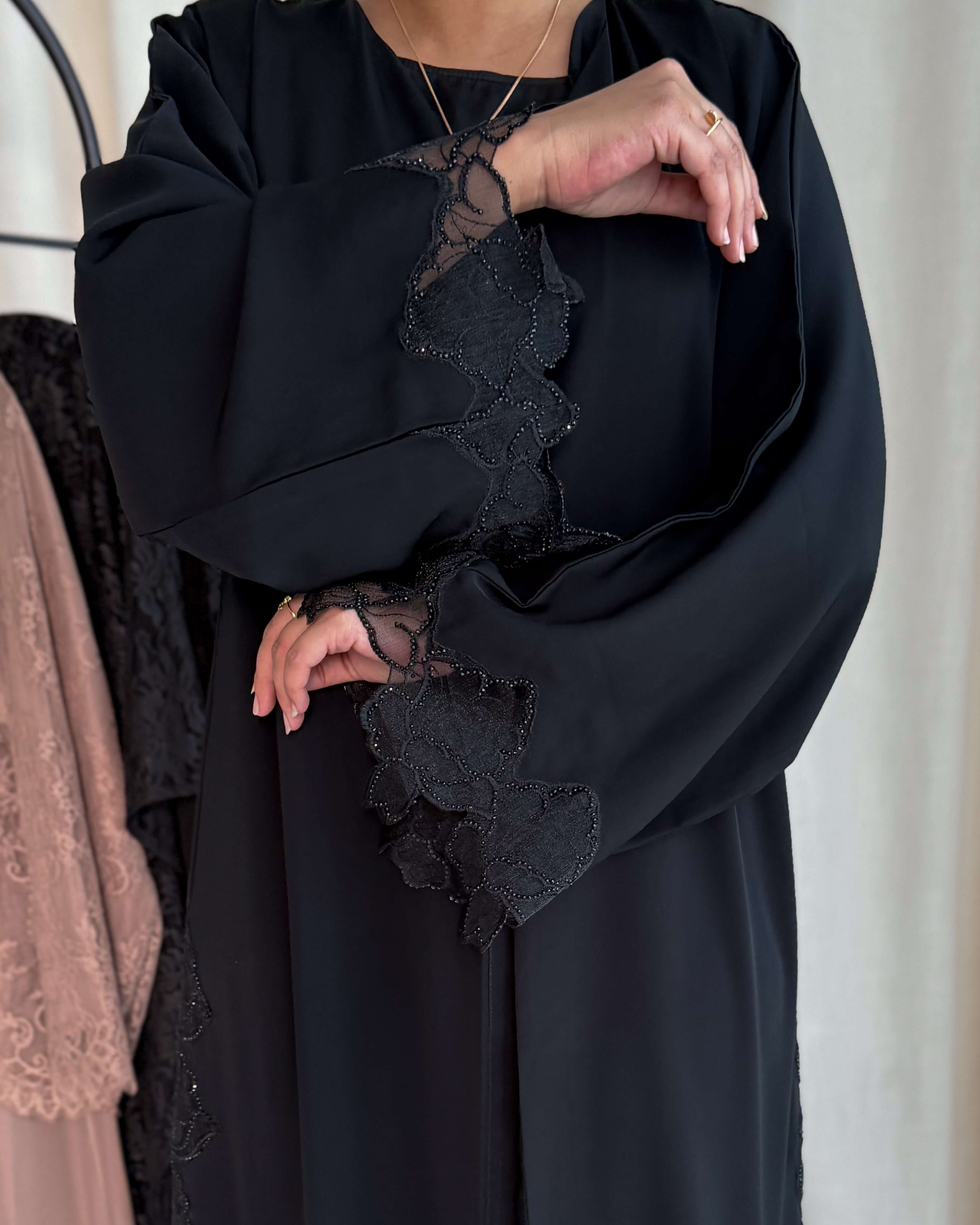 • Le trio khaleeji du moment :  Broderies, Dentelle et Strass noirs